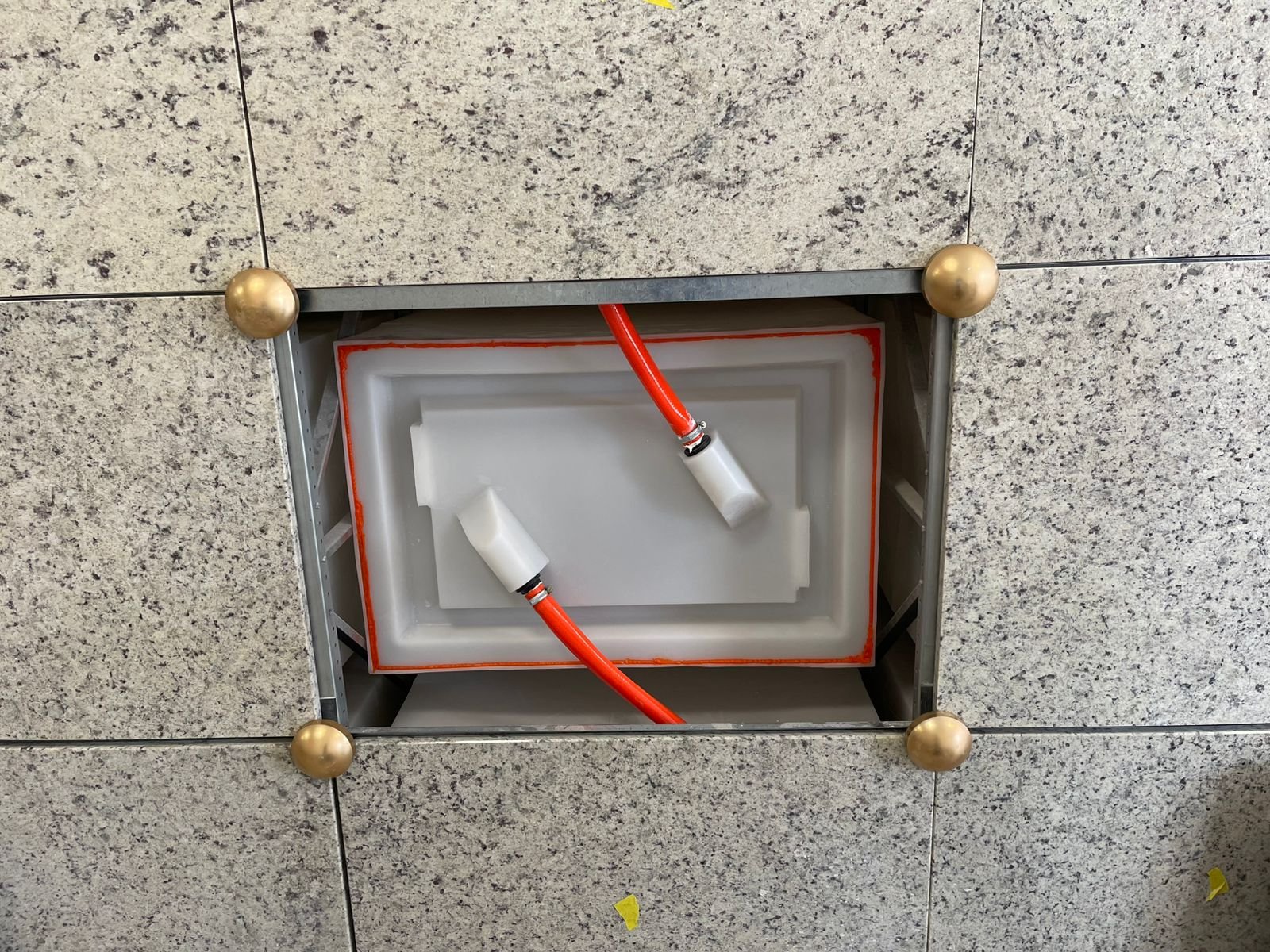 Esse desenho técnico traz uma vantagem operacional importante: a instalação e manutenção das mangueiras podem ser realizadas sem que o trabalhador precise entrar no lóculo, aumentando significativamente a segurança do processo. Além disso, ao dispensar um corredor de serviço na parte traseira do lóculo, o projeto arquitetônico também é otimizado, poupando área construtiva.